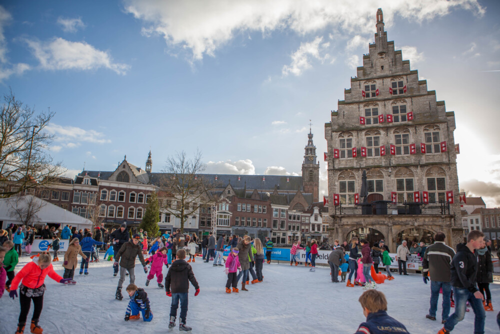 De Goudse IJsbaan ligt weer rondom het Stadhuis op de Markt in Gouda! Kom je schaatsen? Van 20 december 2023 t/m 14 januari 2024 maak je een rondje van 200 meter op de sfeervolle ijsbaan. Of kom in de Koek&Zopie genieten van een warm drankje met zicht op de schaatsende voorbijgangers.